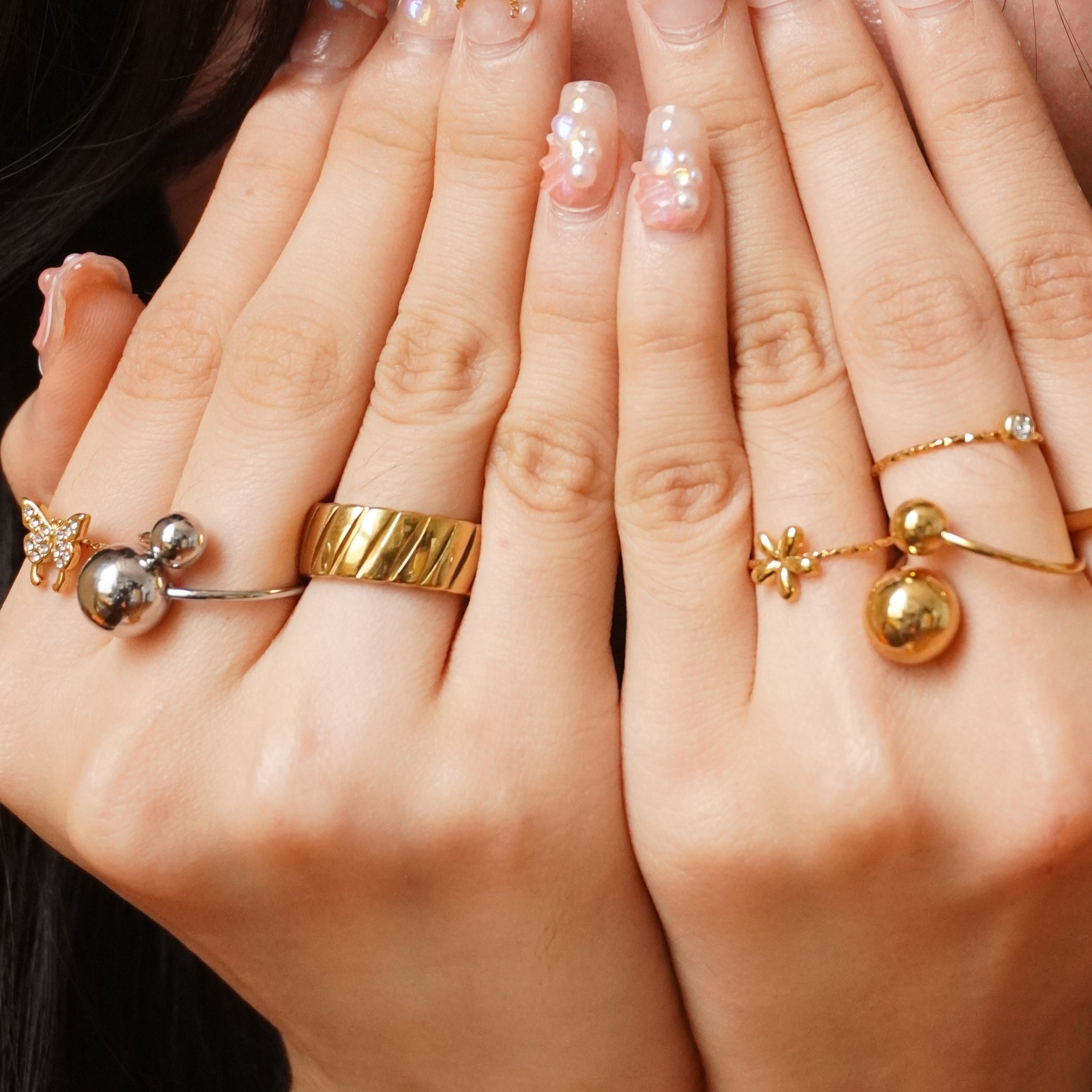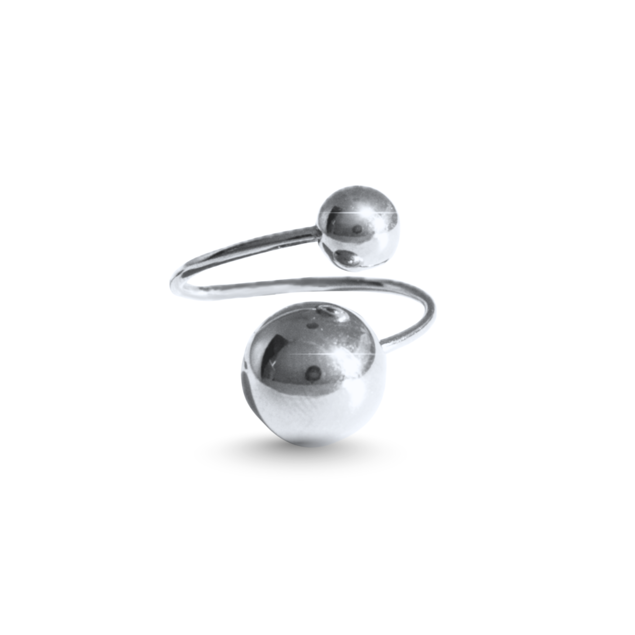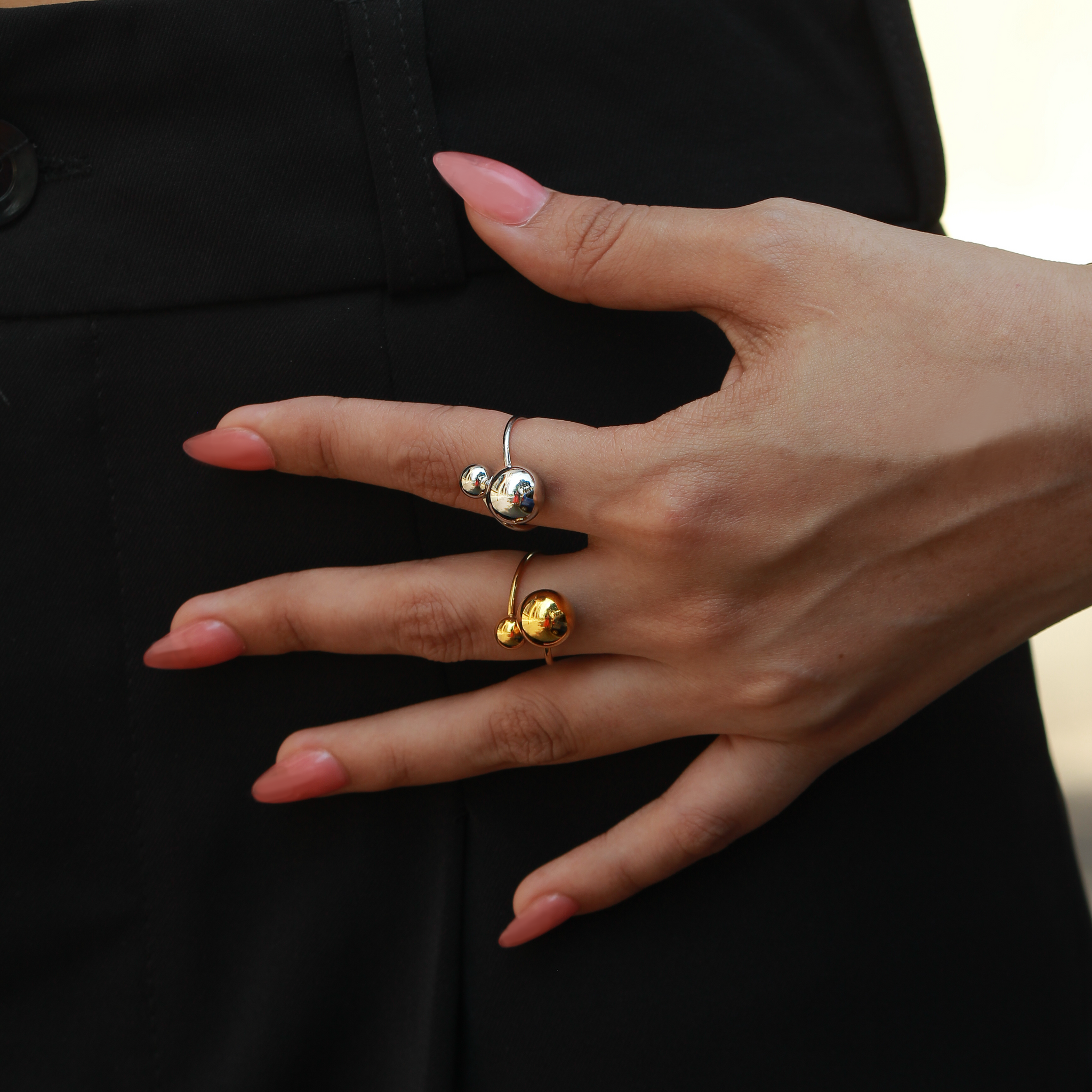 Add a modern touch to your look with this sleek silver ring, featuring minimalist spherical designs that create a unique, contemporary style.