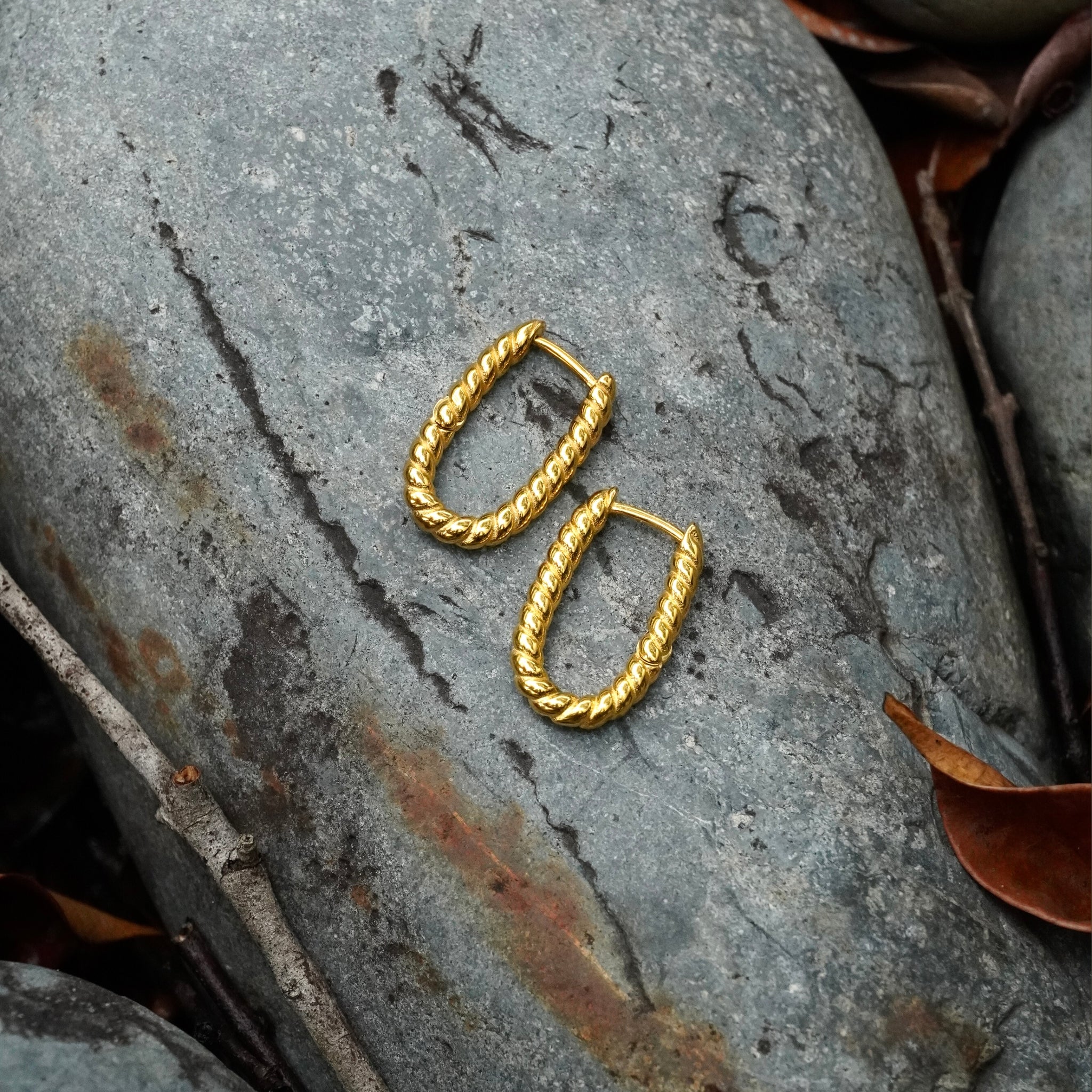 Say hello to Ropie Hoopie! A small hoop that adds a playful twist to the classic style. With its rope-inspired texture and golden shine, this little beauty brings effortless charm and chic energy to any outfit