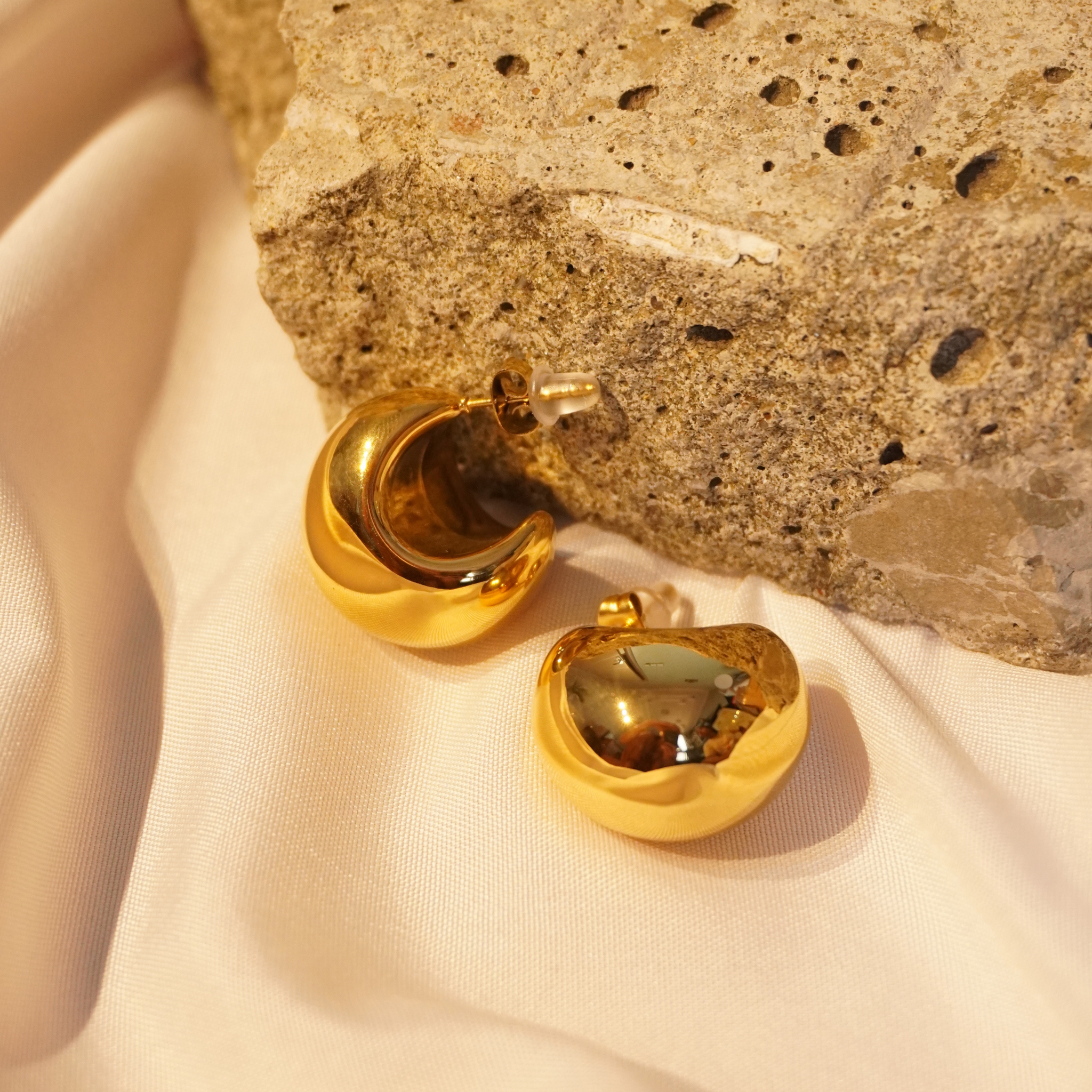 Add a bold, modern touch to your look with these sleek gold earrings, featuring a sculptural design that makes a statement for any occasion.