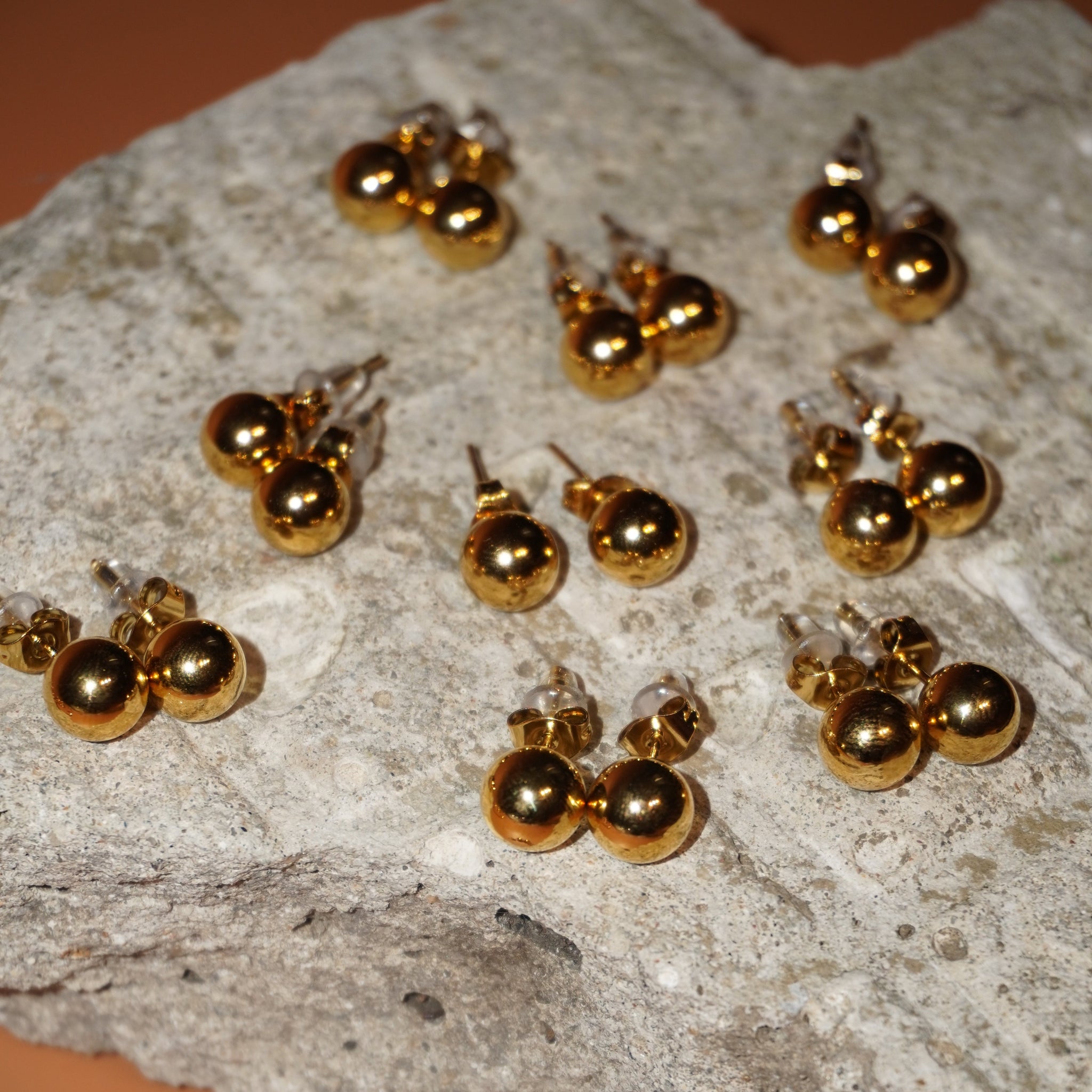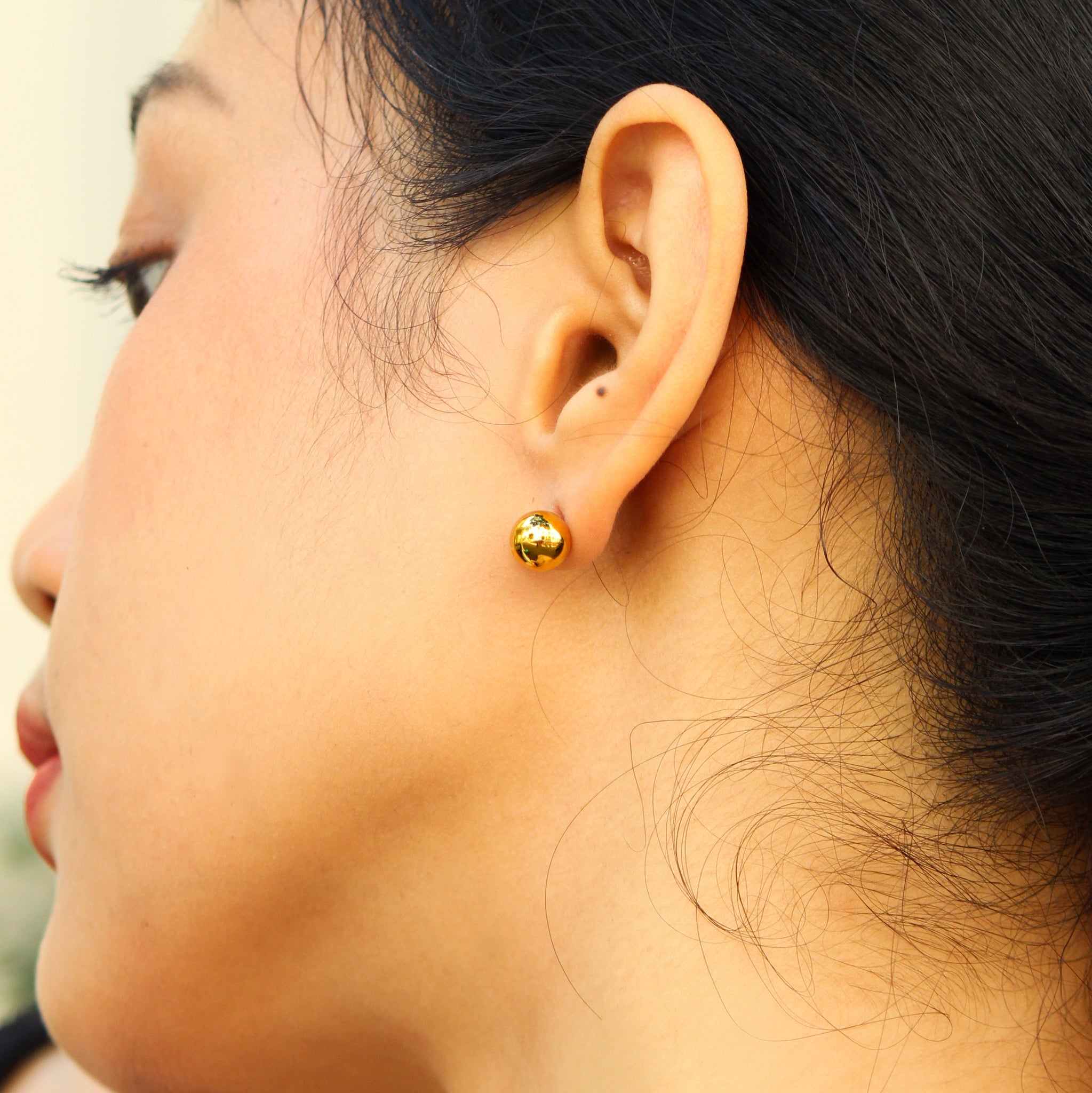 Simple yet striking, these gold stud earrings feature a sleek, polished ball design. Perfect for adding a touch of elegance to any outfit