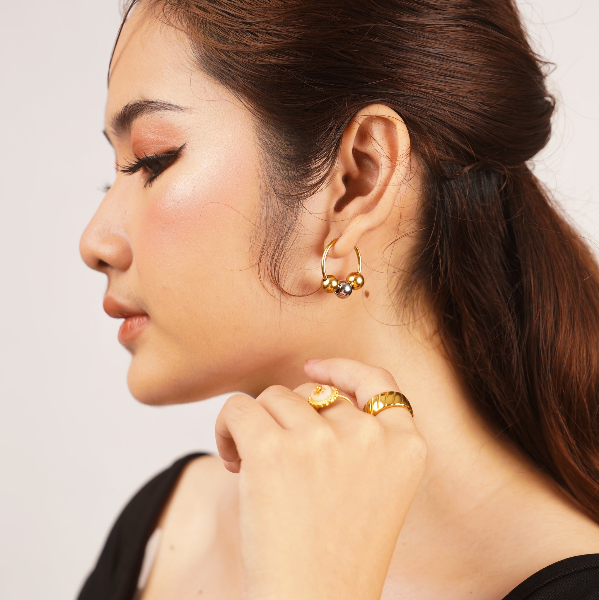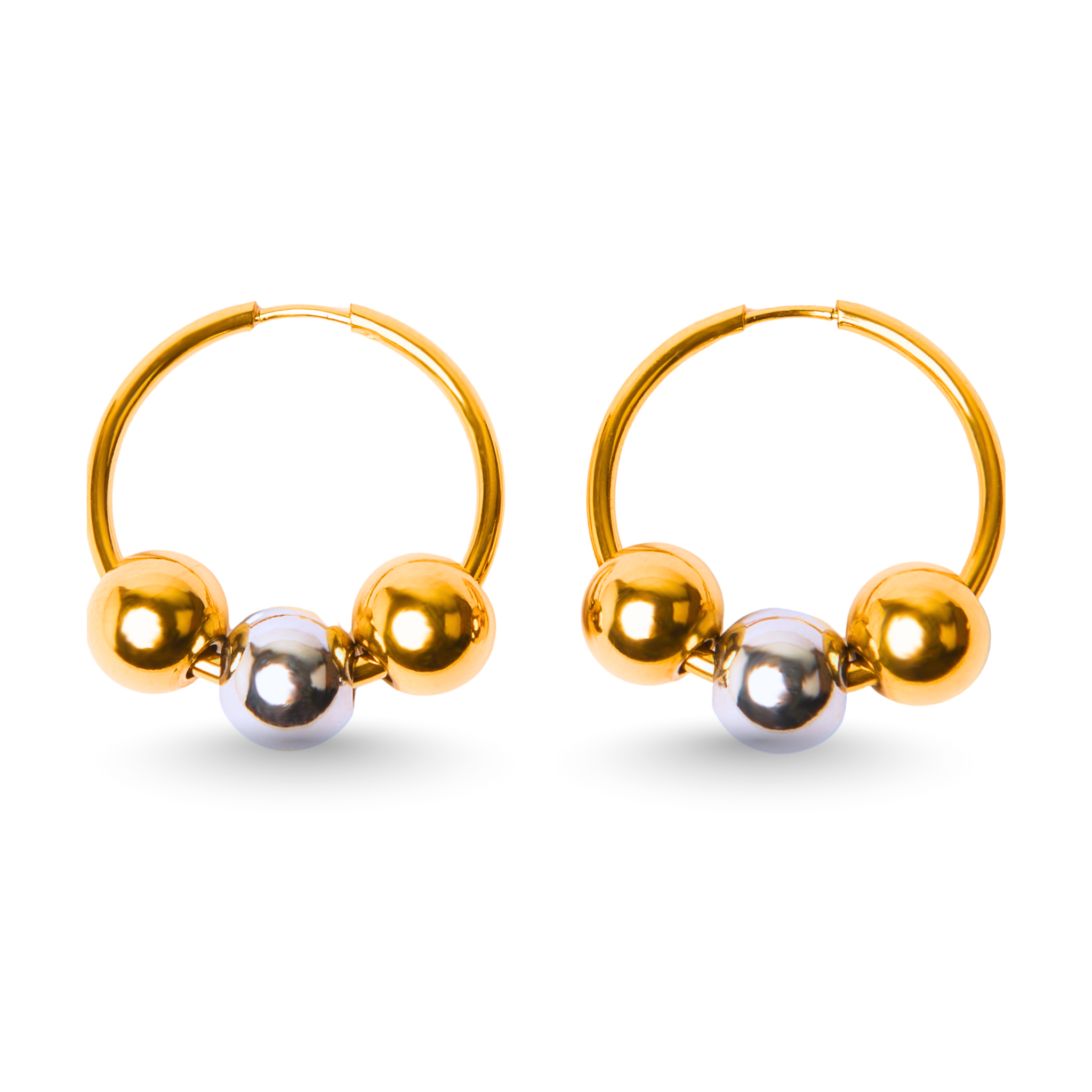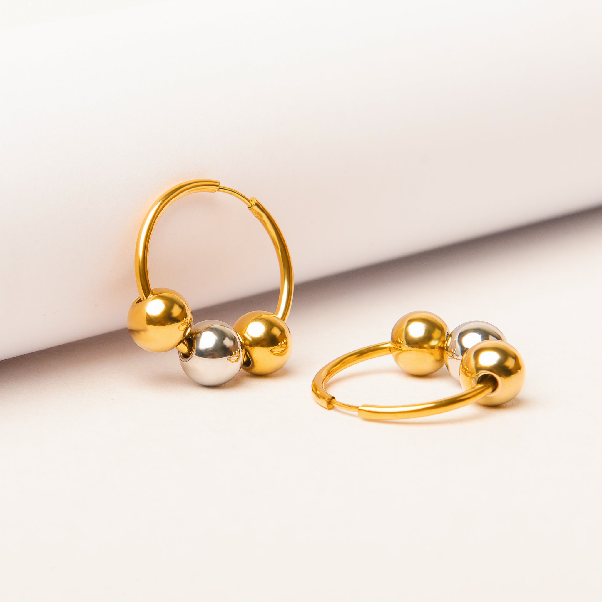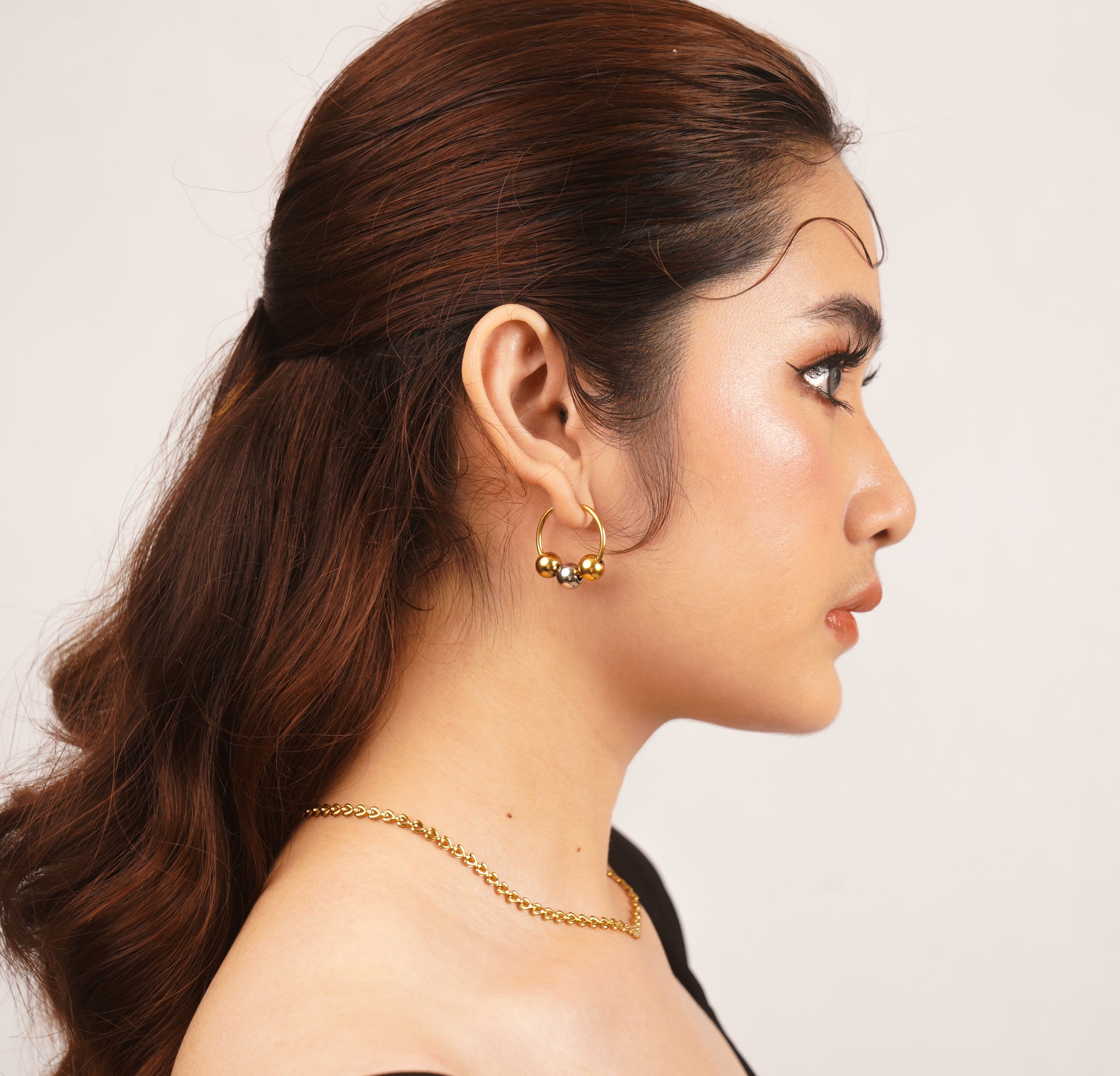 These hoop earrings bring a playful twist with adorable silver and gold balls. The fun part ? You can remove or style them however you like, making these earrings as versatile as they are cute.